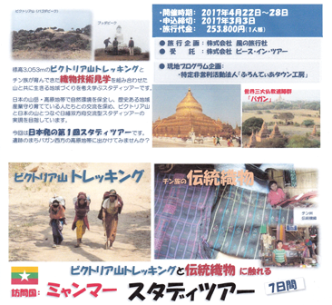 M 民主化を目指す新政権になって少数民族問題が色々と伝わってきますが、今日お話しいただいたことは、少数民族がすむ各州の地域づくりについてとても大切なことだと思います。最初にお話しした私たちが進めているチン州へのスタディツアーのPRチラシをお渡しします。ここに「日緬双方向交流型スタディツアーの実現を目指す」と書いていますが、「双方向交流」という共通のキーワードで今後ともお付き合いできたらと思います。話が変わりますが、2013年春に初めてビクトリア山に登った時、ガイドさんからミャンマー独特の水曜日を2つに分けて8曜日にしている占いのことを教えてもらい、それ以来興味を持って本などで見ていますが、和田さんは長く住んでおられて何か感じていることがありますか?